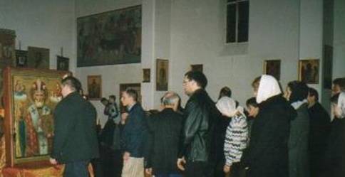 Икона была установлена на стене сзади престола в храме св. Александра Невского.